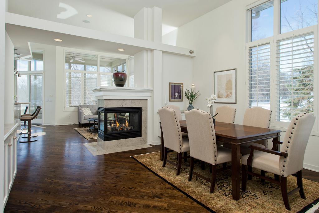End unit Hidden Lakes townhome offers sweeping pond and woodland views with unexpected privacy. High ceilinged main level features a well-appointed open floor plan. Southern exposed kitchen, breakfast area and deck are open to the living area and screened porch. Main level vaulted master suite, dining room, den (2nd bedroom with ensuite access to hallway full bath), laundry center and attached two car garage. Walkout level with additional bedroom, three quarter bath, family room and covered brick patio. Step out to walking paths and lawns, enjoy lovely views from season to season whether entertaining or relaxing.
