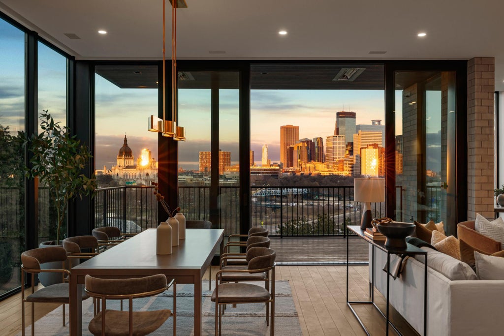 35 Groveland Terrace - PRICE REDUCED -Residence 202 – Staged, and photographed to showcase both the stunning views of the Minneapolis skyline, as well as the modern design from PKA and Martha Dayton Design. This residence offers 2,627 SF with three bedrooms and three baths. Skylights illuminate the hallway. Luxurious primary suite with two closets and ensuite bath with tub and a shower. Stunning chef's kitchen with Wolf integrated gas cooktop, double ovens, Sub-Zero refrigerator; Large 20’ x’9’ front balcony with integrated heaters; 18’ x 10’ exclusive rooftop deck; private two-car, underground heated garage for each home with storage and power for EV charger. Secured building and elevator access. Set above the street, and overlooking the City and Sculpture Garden. Ready for you to call this Home.