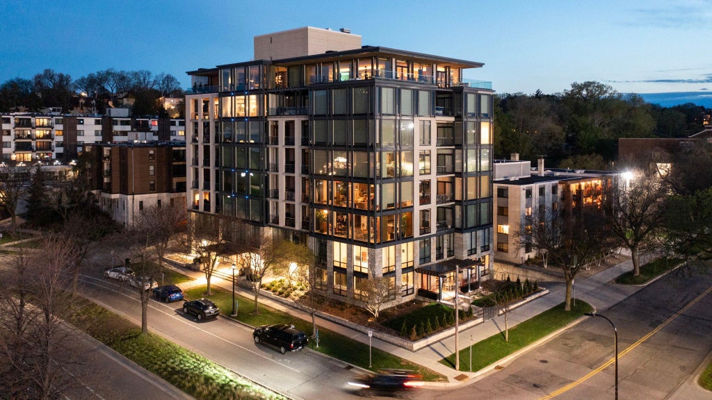 Sheer perfection! Professionally remodeled 2BR + den/library unit with high ceilings, walnut floors & floor-to-ceiling glass walls capturing phenomenal Sculpture Garden & Minneapolis skyline views from public rooms, including living room with fireplace & stunning center island kitchen/great room, opening onto an expansive covered terrace plumbed for gas grill. Luxurious primary suite with private marble bath & dual dressing rooms. Generous guest room, 2nd bath, laundry & den with library shelving complete the unit. Elevators open privately into each unit. 301 Kenwood Pkwy is an architectural gem, with easy access to freeways and downtown Minneapolis. Walk to Walker Art Center, shops & restaurants.