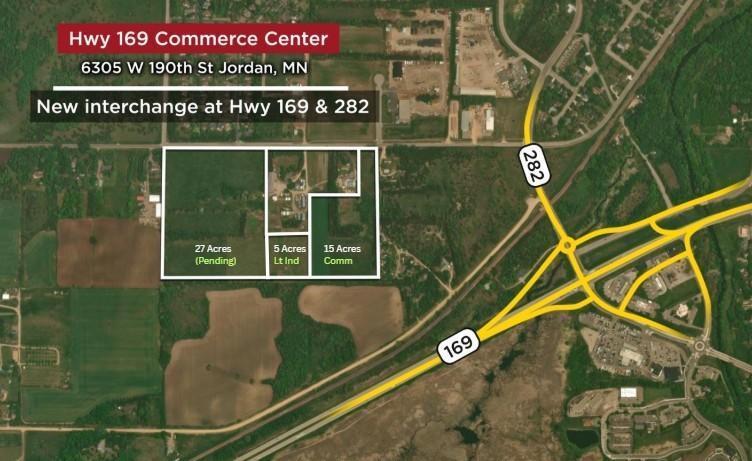 46-108 acres in growing Jordan! Level lot. Sewer and water available. Near Jordan's new planned interchange. Easy access to Hwy. 169, Hwy. 212. Just South of Shakopee. Lots of potential for Business! There are 108 -/+ acres available on Hwy 169. Guided Commercial & light Industrial.
