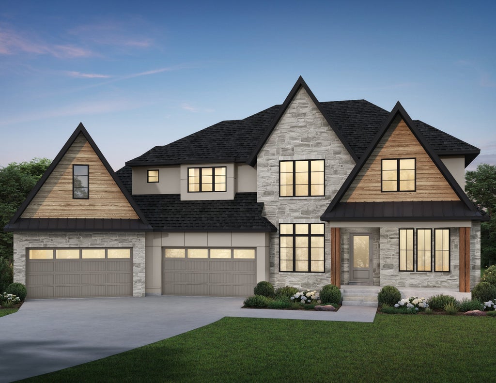 Hanson Builders STONEBROOK SPORT in Koch Farm Sanctuary is 7,600 square feet of beautiful design selections and functional spaces! The main level is open and spacious with floor to ceiling black Marvin Windows, 10’ ceilings, and ceiling beams and detail throughout. A chef’s dream kitchen with large center island, sink on the exterior wall, high-end range, and walk-through prep pantry. Vaulted hearth room overlooking long views of mature trees. Four bedrooms and bonus room on the upper level, including private Master Suite with dual closets. Secondary bedrooms have Daybeds, private baths and walk-in closets. Fully finished lower level with Sport Center, Golf Simulator and viewing area, wet bar, and additional bedroom. Koch Farm Sanctuary offers 33 spacious acreage lots, ranging from 1.5 to 3.6 acres, OPTION FOR OPEN ENROLLMENT AVAILABLE IN ORONO SCHOOL DISTRICT! Out of school district bus stop located in neighborhood.