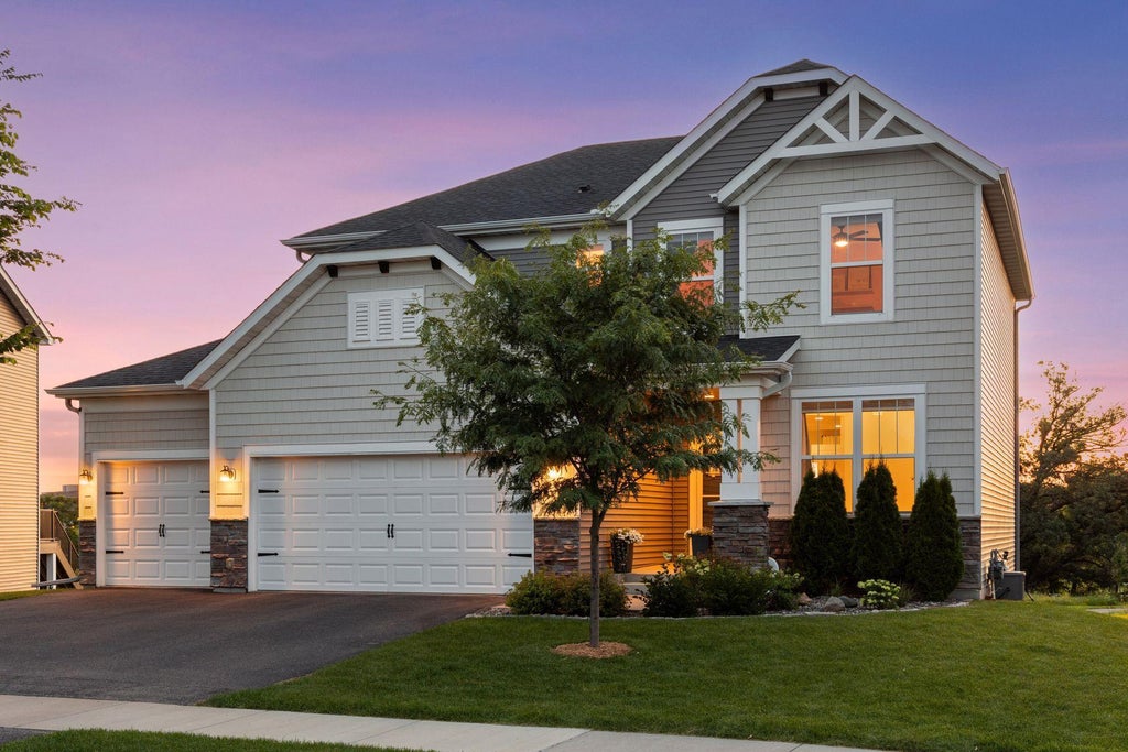 Tucked away on a private, wooded lot at the end of a peaceful cul-de-sac, this stunning home offers the perfect blend of space, style, and serenity. Located in the highly sought-after Basswood Elementary boundary, enjoy the convenience of nearby trails, a neighborhood park, and a dog park—ideal for active lifestyles. Step inside to an open and airy main level with built-ins in the living room, flexible dining or playroom space, and a tucked-away office just off the kitchen. Upstairs, you'll find a spacious primary suite overlooking nature, complete with a large walk-in closet and private bath, along with three additional oversized bedrooms—all with walk-in closets—and a convenient upper-level laundry. The newly finished lower level (2022) is an entertainer’s dream with a cozy fireplace, stylish mini bar, and expansive fifth bedroom—perfect for guests or multi-generational living. Step out to the brand-new patio under the deck, thoughtfully waterproofed to create a seamless outdoor retreat. Enjoy newly completed landscaping that enhances the home’s already impressive curb appeal. Top it off with a heated and insulated garage, offering year-round comfort and added utility for projects, storage, or Minnesota winters. This home truly has it all—space, upgrades and ideal location. Welcome home!