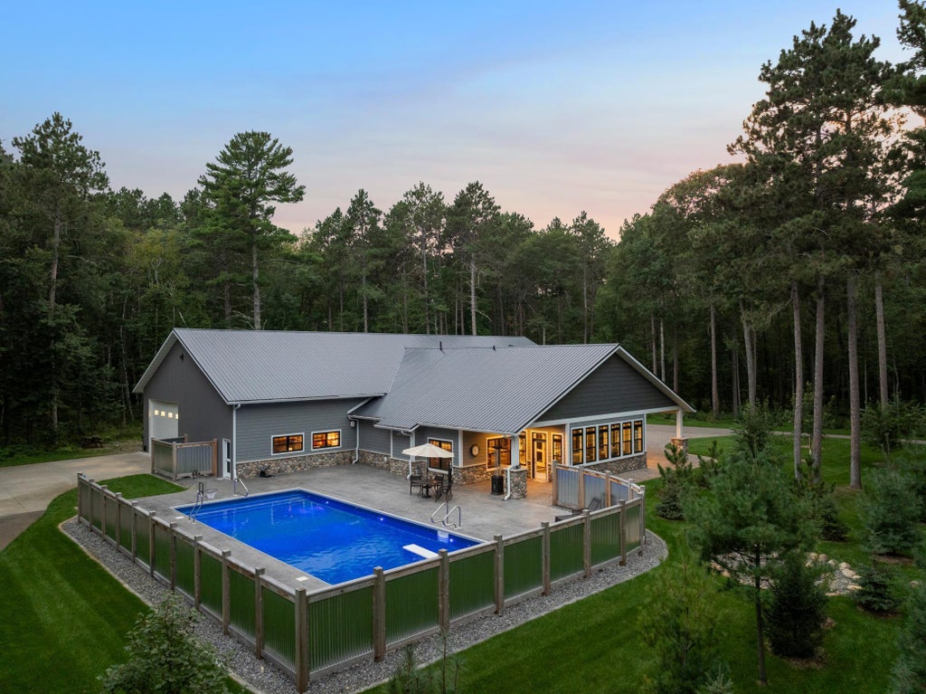 Escape the hustle and bustle of modern life at this unique retreat located at 5883 Driftwood Lane in Pine River. This property boasts 2,840 square feet of beautifully designed living space, featuring a stunning stone fireplace and top-of-the-line appliances, including an indoor gas grill. You'll also find brick accent walls, charming tin finishes, and distressed wood elements throughout the home. With an expansive 4,060 square feet of heated, insulated storage space, there is plenty of room for all your toys and hobbies. Set on 1.84 private acres surrounded by mature trees, this retreat offers serene seclusion, manicured grounds, picturesque paver walkways, a beautiful covered patio, and a dedicated fire pit area. Start your day in the newly added 20x40 ft heated inground pool going for a swim! Ideal for lake homeowners, this property is a perfect getaway for hosting family and friends. Located near the Whitefish Chain, it is the ultimate base for boating, fishing, swimming, and enjoying all your favorite lake activities. Truly, this is a hidden gem!