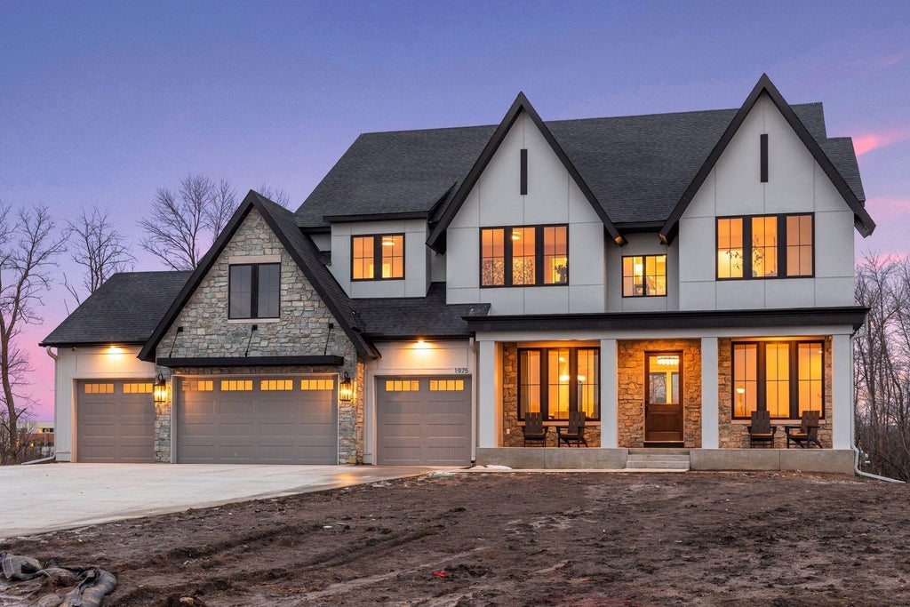 Hanson Builders STONEBROOK SPORT in KOCH FARM SANCTUARY! Over 7,200 square feet of beautiful design selections and functional spaces! The main level is open and spacious with floor to ceiling black Marvin Windows, 10’ ceilings, and ceiling beams and detail throughout. A chef’s dream kitchen with large center island, sink on the exterior wall, high-end range, and walk-through prep pantry. Vaulted hearth room with heated flooring. Four bedrooms and bonus room on the upper level, including private Master Suite with dual closets. The secondary bedrooms have daybeds or a built-in desk with private baths. Fully finished lower level with Sport Center, Golf Simulator and viewing area, wet bar, and additional bedroom. You’ll want to see this one! Koch Farm Sanctuary offers 33 acreage lots ranging from 1.5 to 3.6 acres! OPTION FOR OPEN ENROLLMENT AVAILABLE IN ORONO SCHOOL DISTRICT! Out of school district bus stop located in neighborhood.