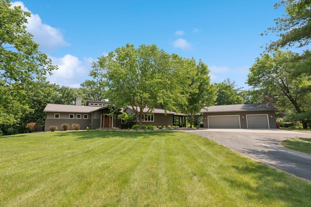 Custom built home nestled on a parklike lot. The 4.7 acres has a mix of open green spaces and mature wooded areas. The oversized heated three car garage has room for your extra sports equipment and space for a shop. As you enter you will notice the beautiful wood floors, large fireplace and endless views from the full wall of clerestory windows in the vaulted great room. First floor has a huge primary bedroom with large bath. Also, a kitchen with custom cabinets and granite counters. Enjoy the private office with views of nature. The lower level has two bedrooms, large rec room that walks out to a deck overlooking a wooded vista. You will not be disappointed. views and nature all around and room for horses.