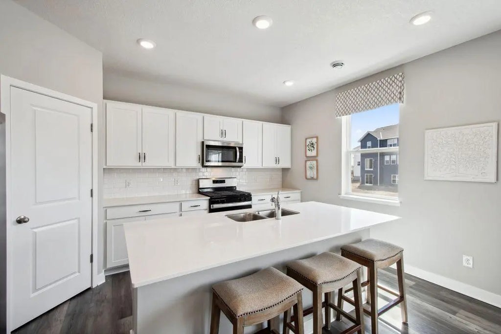 Ask how you can receive a 4.99% Government or 5.50% Conventional 30 yr fixed rate mortgage PLUS up to $5,000 in closing costs on this home! Home is complete NOW! Our Holcombe floorplan; A fabulous 2-story, thoughtfully designed home! This home includes a basement on a walkout homesite! On the main level, right off the entry is an office/flex space. A stunning kitchen is the heart of the home with large island, white cabinetry accented by black hardware and white subway tile backsplash, corner pantry, stainless steel appliances and quartz countertops. The family room is anchored by an electric fireplace, creating lots warmth and ambiance. A main level half bath offers convenience and is perfect for guests. The upper level features 4 generously-sized bedrooms (3 with walk-in closets!), 2 bathrooms, loft space and huge laundry room, plus a bonus storage room off the laundry! Primary bedroom features a private bath with dual vanities and large walk-in closet. Garage is oversized with 2.5 stalls for extra storage space! Plus, enjoy all the amenities of resort-style living as a resident of the Brookshire community! Featuring a state-of-the-art clubhouse, with fitness center, yoga studio, locker rooms with showers, heated outdoor pool, playground, pickleball courts, basketball court, bocce ball, and both indoor and outdoor gathering spaces! In close proximity to local schools, and just 2 miles from grocery shopping, Target, restaurants, and all that the city of Lakeville has to offer! Come visit and see for yourself!