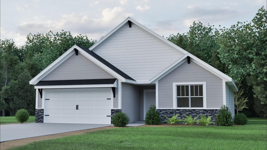 Discover the ease of single-level living in the Rockwood — a beautifully designed 3-bedroom, 2-bath home perfect for every stage of life. The open-concept layout is filled with natural light from expansive windows, creating a bright and inviting atmosphere. At the heart of the home, a spacious kitchen features granite countertops, stainless steel appliances, and elegant soft-close cabinetry. Thoughtful details like 9-foot ceilings, durable LVP flooring, a functional mudroom, a dedicated laundry room, and generous storage space enhance everyday comfort and convenience. The private owner’s suite offers a peaceful retreat with an en-suite bath and a large walk-in closet. Nestled on a generously sized acreage lot, this home features a serene backyard surrounded by mature trees, offering both privacy and natural beauty. Exceptional style, smart design, and great value come together in this stunning home.