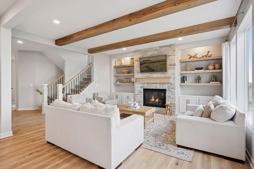 Low interest rate available with the right price! This custom-crafted home was built by Hanson Builders in 2023 and thoughtfully designed from top to bottom by a local interior designer to bring a cohesive vision to life! This is anything but your standard new construction home. It is a caliber above the rest with an endless list of upgrades to selections; including a stunning floor-to-ceiling stone fireplace with custom built-in shelving and lighting, beam accents on the 10-ft ceilings, California Closets in primary suite, highgrade stone countertops with high-end stainless steel appliances, custom shelving and cabinetry in laundry area, detailing in home office, highest grade carpet and padding, upgraded light fixtures throughout, hardwired exterior speaker system on back patio, ironrod staircase spindles, and a walk-in pantry to name a few. On the mainfloor you'll be warmly greeted by all the thoughtful design as well as the private front office. But don't miss the bonus room behind the kitchen that was being used as the perfect homeschool area, reading room, or hobby room. Upstairs is host to the luxurious and restful primary suite with walk-in shower, soaking tub, and split vanities; along with 3 other spacious bedrooms and shared bathrooms. As you head to the lower level, you'll find this bright and sunny walkout basement with a complete wetbar and minifridge, along with a spacious living area and the final bedroom and bathroom. The flat backyard with large tree cover helps make this feel more private while still being in an amazing community. If this wasn't reason enough to call this place your forever home, the Riverwalk Neighborhood amenities will tip the scales. Featuring a beautiful clubhouse with an inground pool just one block away, along with state-of-the-art Pickleball Courts and Playground area to keep the family active and entertained. This newly built custom home allows you to skip the year-long build process and overwhelming decision making of design selection and upgrades. Move in to more than just a stunning home, move in to the lifestyle and community you've always dreamed of.