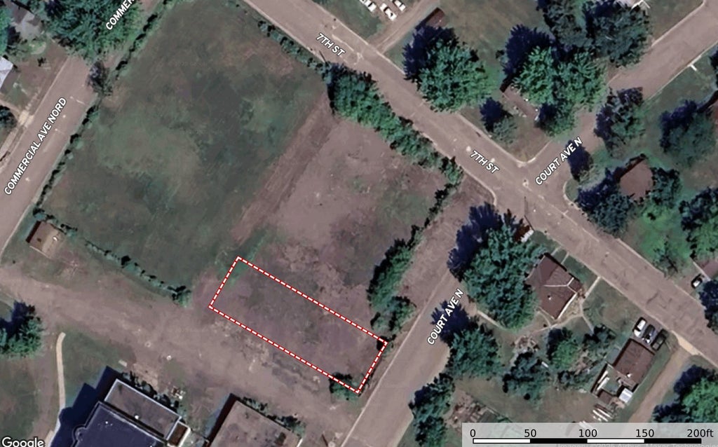 50x150 lot for sale in Sandstone (Lot 4), there are four total lots available. This property is currently zoned for school use and appears to be an old playground area. The entire area, along with the neighboring property is fenced with chain link fencing. There is a survey stake on the NW corner of Lot 1. Lot 4 is a sloped lot with trees along the east property line and fencing bordering on the east and south side. The lot is covered in old asphalt that a buyer would likely need to remove depending on their intended use for the lot.