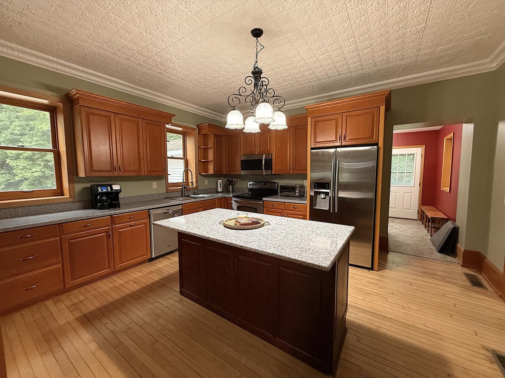 With modern convenience of Fiber Optic Internet to the house (FTTH), this home offers today’s technological advances combined with the classic bold charm of the early 20th century American Four-Square Home. FTTH speeds up to 1 GB available for those professionals working, schooling, or gaming from home. Entering the driveway of 78994 160th Street Sacred Heart, your eyes will open wide and jaw drop, as this stout 2.5 Story Solid brick home peers at the end of the drive. The mature trees create a natural private corridor, concealing this historic treasure. The 10+ acre hobby farm will entice animal and garden enthusiasts from the 35X65 Barn with Loft, 18X65 loafing barn behind it, a 45X90 Quonset for bales or equipment, a 30X70 Nelson Hut Quonset, Chicken Coup, 2-3 separate pasture areas, a 20X20 heated & insulated work shop with 200 amp service, and another barn area for animals or storage. Let us focus on this gemstone of a home! Size is one thing, with over 3100 finished square feet of living space, the character is another, which is endless as you walk through this beautiful stunning historical home. Starting out with the front porch with stout pillars and then the history of home ownership engraved in the century plus old home exterior brick as you enter. Much care and thought are incorporated in this home, from its in-floor heating and air exchange systems to the completely renovated gorgeous kitchen to the condition of the detailed woodwork throughout which encompasses the doorways, doors themselves and windows. Most windows have been replaced in recent years. The practicality of the home’s layout enhances the property’s appeal, from the main floor living with laundry, primary bedroom, and primary bathroom all on the main floor. Also, the mudroom connecting the house to the two-car garage provides another ideal convenience for this rural property. Each floor has a seamless flow of energy. Call today to experience an amazing tour of this unique property.