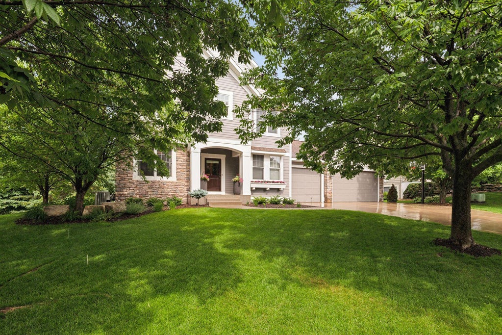 You will be delighted by the quality of construction in this custom built 2-story home! Updates begin outside with beautifully refreshed landscaping, a stunning concrete driveway leading to a covered front porch and updated siding. Inside, the current owners have thoughtfully enhanced both functionality & style. The main level boasts updated solid wood flooring throughout. You'll find a front office with built-ins, a spacious mudroom space featuring a boot bench and ample storage, and a butler's pantry leading to the gourmet kitchen. The kitchen flows seamlessly into the formal dining space, living room and sun-drenched dinette all surrounded by large windows that fill the main level with natural light. The living room is anchored by a stone, floor-to-ceiling gas fireplace and practical lower built-ins. Step outside from the freshly stained deck to discover an amazing, vaulted screen porch. Upstairs, four bedrooms each offer walk-in closets and the large laundry room provides a folding counter, cabinets and a sink. The walkout lower level is an entertainers dream, featuring a fifth bedroom, exercise room, and family room with gas fireplace and built-ins. There is also a wet bar with cabinetry and seating, plus tons of storage. Sliding doors open to a beautiful patio privately nestled among large evergreens. This home is ideally located close to sidewalks, trails, the community pool & parks!