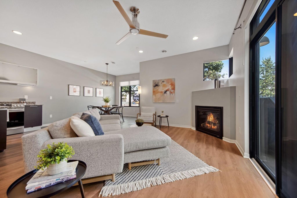 Welcome to this modern 2 bed, 3 bath townhome in the heart of uptown! Step inside to find luxury vinyl flooring, fresh paint throughout, brand new carpet and a new water heater and furnace! The bright, open layout features an extra dining room bump out that brings in tons of natural sunlight. Enjoy a cozy gas fireplace — perfect for Minnesota winters. The modern kitchen includes a walk-in pantry and easy access to the attached two car heated garage, which offers tons of extra storage plus a private closet. From the living room, step out onto your spacious corner walkout patio with a grill already connected to a gas line. Upstairs, you’ll find two generously sized bedrooms, each with its own ensuite bathroom. The primary suite features a double vanity, a spacious walk-in closet, and convenient laundry just steps away at the top of the stairs. Enjoy unbeatable access to the Midtown Greenway, top restaurants, cafes, public transportation, and local hot spots like Up-Down, Moto-i, and Bryant Lake Bowl — all just moments from your front door. This is your chance to live in the heart of it all!