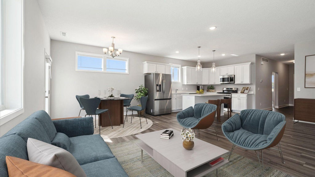 New construction twin home by Creative Homes, complete and available for immediate occupancy in the Oak Hill community of River Falls. This home features quartz countertops, soft-close cabinetry, a gas fireplace, and window blinds throughout. The kitchen is equipped with a Upgraded French door refrigerator, gas range, dishwasher and microwave. Front-load washer and dryer are also included. Thoughtfully designed with quality finishes throughout. Located close to parks, shopping, and downtown River Falls. HOA-maintained for low-maintenance living.