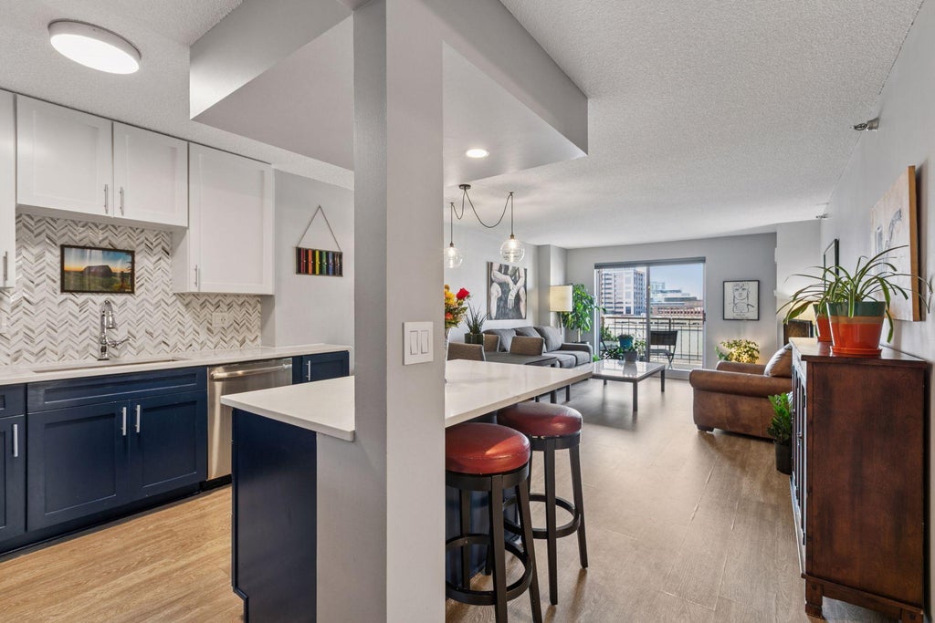 Experience upscale urban living in this beautifully updated, south-facing condo in the heart of the Mill District. The kitchen is a true showstopper, featuring a marble island and countertops, high-end glass tile backsplash, and sleek modern finishes. The spa-inspired bath includes a Carrera marble shower, adding a touch of luxury to everyday living. Soak in panoramic views of the downtown skyline from your light-filled living space, perfectly positioned to capture stunning sunsets and city lights. Building amenities include an outdoor pool, fitness center, dog park, guest parking, and more. All this within walking distance to restaurants, parks, and the riverfront — a rare find!