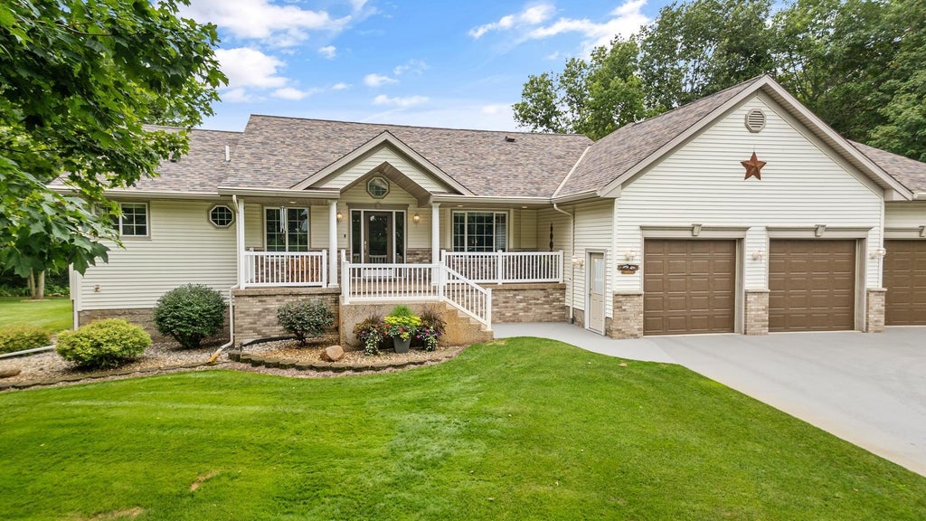 One-of-a-kind estate features full-privacy, park-like backyard setting with showstopping water feature. This immaculate, one-level-living custom rambler with two outbuildings sits on 5.41 mature acres. Located near Geneva Golf Course, recreational lakes, & just minutes from downtown Alexandria. The homestead is impeccably maintained inside & out, quality built, craftsman finished, full of character & choice upgrades. Architectual 40-year asphalt roof was replaced in 2022. Exposed-aggregate steps welcome you to the covered front porch & grand foyer. Oversized windows display dramatic views of the stunning backyard. Main floor Primary Suite with romantic gas fireplace, Juliet balcony, walk-in custom closet, renovated bathroom with tile shower & soaking tub. Main floor laundry, sauna, sunroom & walkout to huge deck. Beautiful kitchen & entertaining spaces. The lower level is fully finished for all things entertainment. Open concept media/family room with professional pool table, game/poker seating, room for fitness equipment. You'll find the storage-safe room has been converted to resemble a railcar with curved cedar ceiling, displaying an impressive collection of model train sets touring through the painted mountains. Another two exceptional bedrooms and a massive bathroom are found down the quiet hallway. Even the mechanical room is fascinating! Epoxy floor coating, Upgraded water filter & softener converted to a whole-house no-salt system. Newly installed HRV (Heat Recovery Ventilation). Oversized 3-stall garage is fully finished, heated, water & 2-drains, epoxy floors, 8' tall doors, storage & "Garage Office" for tinkering. Detached 28'x36' 2-stall shop with concrete floor, 8'x16' door - both garages have 110 & 220 service. Additional 16'x16' insulated utility building with finished walls is a well-appointed kennel (or chicken coop) 6'x16' deck with fencing & animal doors. New driveway with paver edging & 20'x20' paver turnaround. Horseshoe-pits, 8-zone irrigation system, lush flat lawn, perennial gardens, flowering crabapples, 24 maple taps, aerated goldfish/koi pond with fountain. Venture down walking trails through the woods to find a cleared area with 9'x12' "clubhouse" complete with electricity, shower & sink. Kids enjoy volleyball, camping, bonfires & outdoor adventures - maybe you'll choose to turn this flat, sunny area into your irrigated vegetable garden. Private showings only - no open houses.