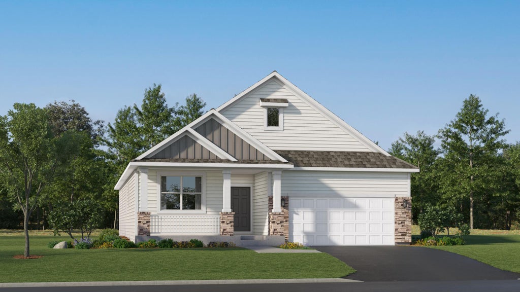 Designed for easy living in Fields of Winslow Cove, this thoughtfully crafted 3-bed, 2-bath home blends comfort with modern charm. Two spacious front bedrooms offer flexibility—perfect for a home office, art studio, or cozy guest space. The open-concept main level centers around a welcoming Great Room with an electric fireplace, flowing into a sleek kitchen featuring stainless steel appliances and a generous pantry. The dining area opens to a covered patio, ideal for unwinding or hosting friends. The owner's suite offers privacy and convenience with a dual-sink bath and walk-in closet. With HOA-provided lawn care and snow removal, plus nearby shopping, dining, and Prairie Knoll Park within walking distance, this home makes low-maintenance living a breeze. This home is under construction and set to be complete in November.