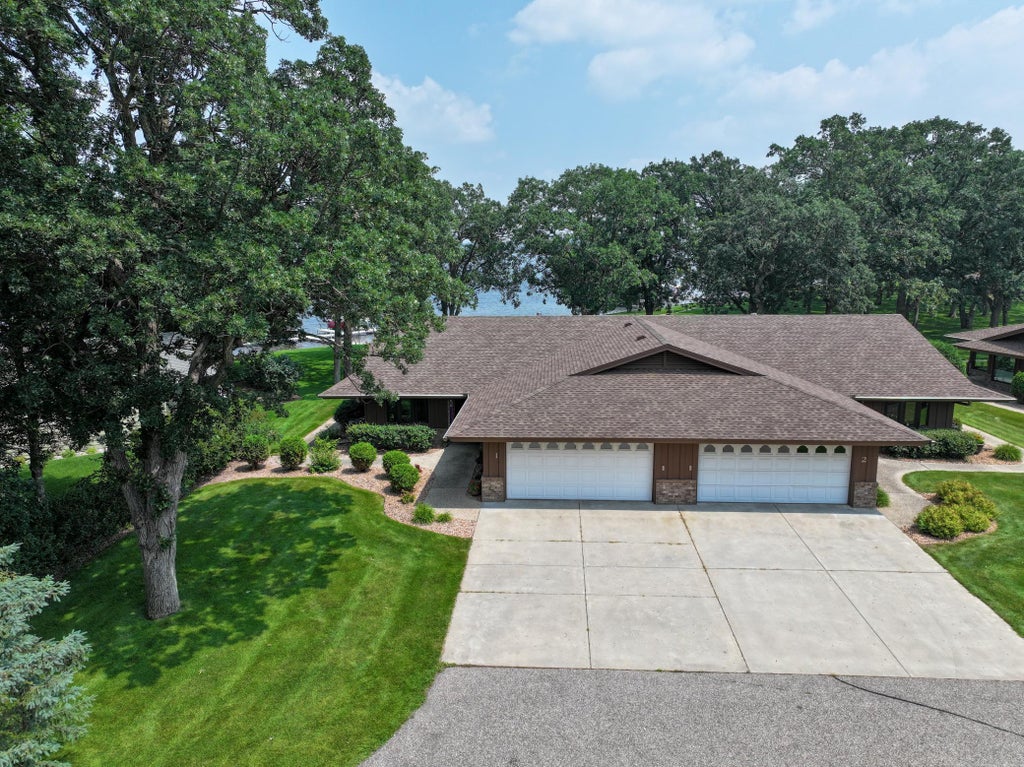 If I have heard it once I have heard it a hundred times... "One day I am going to live on Government Point in the Van Oaks HOA!" Well, here is your opportunity that comes up oh-so-seldom on gorgeous Lake Le Homme Dieu near the end of Government Pt! Let me tell you why this HOA is so desirable... When this 4+ acre piece of land with mature Oaks and 355' of lakeshore was developed, dozens of homes could have been built here. Instead, only five twinhomes (ten units) enjoy the panoramic views from the strategically planned half-moon layout, with this being the end unit to boot! The location, setting and views sell itself here but enter the home and you will see how this unit rises to the top. Absolutely breathtaking views are enjoyed from nearly every inch of this one-level residence that has been maintained and updated to the standard of even the most meticulous. Too many updates to list but here a few that you will appreciate from the last couple of years: All new timeless flooring, gorgeous stone fireplace, Anderson windows, kitchen countertops, walk-in tile shower, powered window treatments, trim work, HVAC and so much more. If you thought you would have to spend $1.5 million + to find an updated home with a level lot on the chain-of-lakes, come take a look at this place. You will not be disappointed!