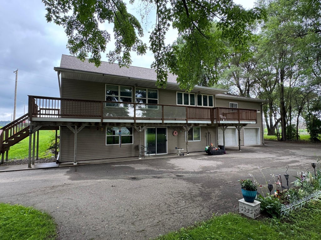 You will love this country home in the rolling hills and bluff land near the Mississippi River. The large home is currently used as a duplex with the lower level being rented to a wonderful tenant on a month-to-month basis. The home features large living spaces, high ceilings, 2 kitchens, 5 bedrooms, 2 baths, updated widows and basement and foundation as this home was moved to this location, 4 car garage – 2 up and 2 down, large patio, wrap around decking, and beautiful gardens and fruit trees. If you want to live on the upper level and have rental income this is a great home for you. If you need a large home with 5 bedrooms – this is a great home for you! The age of the home is unknown as it was a local schoolhouse that was moved to this lot approximately in the year 2000 – addition completed and new foundation of concrete form block and a total renovation. Don’t miss seeing this home listed under assessed value.