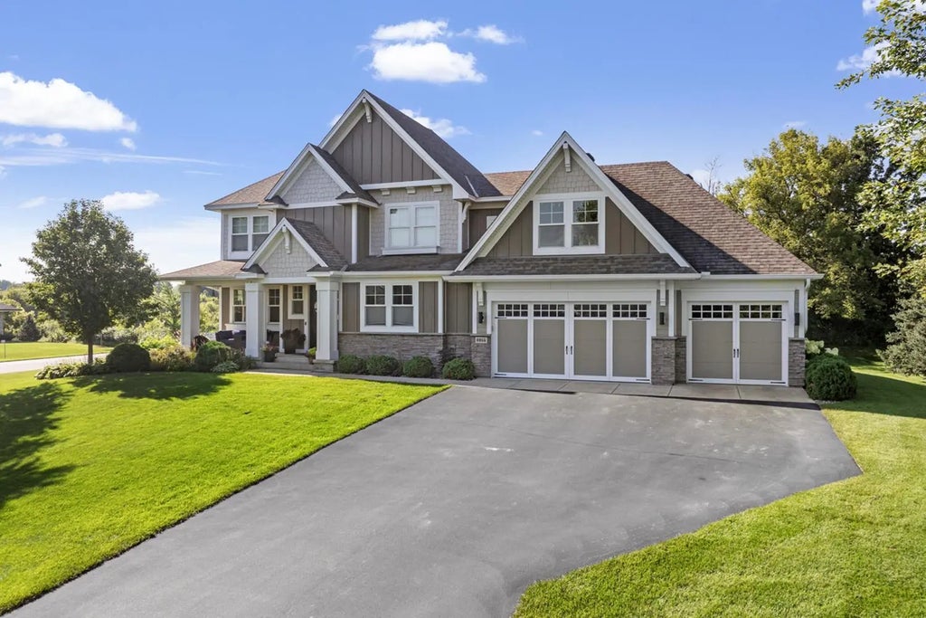 Welcome to The Territory, where refined design meets resort-style living in one of the South Metro’s most coveted neighborhoods. Enjoy exclusive access to Lodge Park—complete with a pool, splash pad, fire pit, clubhouse, parks, and 5 miles of private walking trails. This custom-built home combines exceptional craftsmanship with natural beauty. Set on a private .68-acre corner lot, this residence impresses from the curb. Step inside to discover a formal dining room opposite a spacious executive office with custom built-ins and convenient access to the main-level half bath. Newly installed LVP flooring flows seamlessly into the great room, anchored by a stacked-stone fireplace and custom media built-ins wired for home theater. The chef’s kitchen is fully remodeled for both style and function, featuring Cambria countertops, a large center island with breakfast bar and drawer-style microwave, hardwood maple cabinetry and trim, stainless-steel appliances, double ovens, and a walk-in pantry. A dedicated coffee bar with beverage cooler adds an extra touch of luxury. Relax in the three-season porch with premium IPE flooring, aluminum railings, and a stacked-stone gas fireplace, or enjoy grilling and dining on the adjacent deck. A mudroom with custom built-ins and walk-in coat closet connects to the garage for seamless organization. Upstairs, the primary suite is a serene retreat with expansive views, jetted tub, walk-in shower, dual vanities, private water closet, and dual walk-in closets, plus direct access to upper-level laundry with sink and storage. Two additional bedrooms share a Jack-and-Jill bath, while a large loft above the garage provides flexible space for a recreation room or fourth upper bedroom. The lookout lower level is designed for entertaining, with a spacious recreation area, wet bar, beverage cooler, electric fireplace, plus an additional bedroom and ¾ bath. Outdoors, enjoy professional landscaping, a custom paver patio, including a recently purchased hot tub. A fully finished heated garage with epoxy floors with drains, and a dog washing station completes this exceptional property. Walking trails connect the neighborhood, all within the highly regarded Lakeville School District.