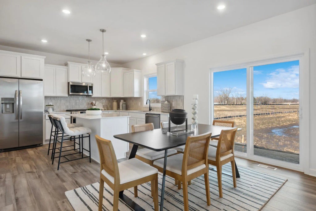 Home is under construction and will be complete in September. Ask about savings up to $6,500 when using Seller's Preferred Lender! This new two-story home features a contemporary design. The first floor showcases a Great Room flowing seamlessly into a nook and kitchen with a corner pantry, while flex space offers versatility. Upstairs are three secondary bedrooms, a luxe owner’s suite, laundry room, and a spacious walkout homesite completes the home. Residents enjoy a great location just 20 minutes south of Minneapolis and St. Paul, and just east of downtown Rosemount where there are lots of shops, restaurants and entertainment options. The local high school is just 3 miles away.