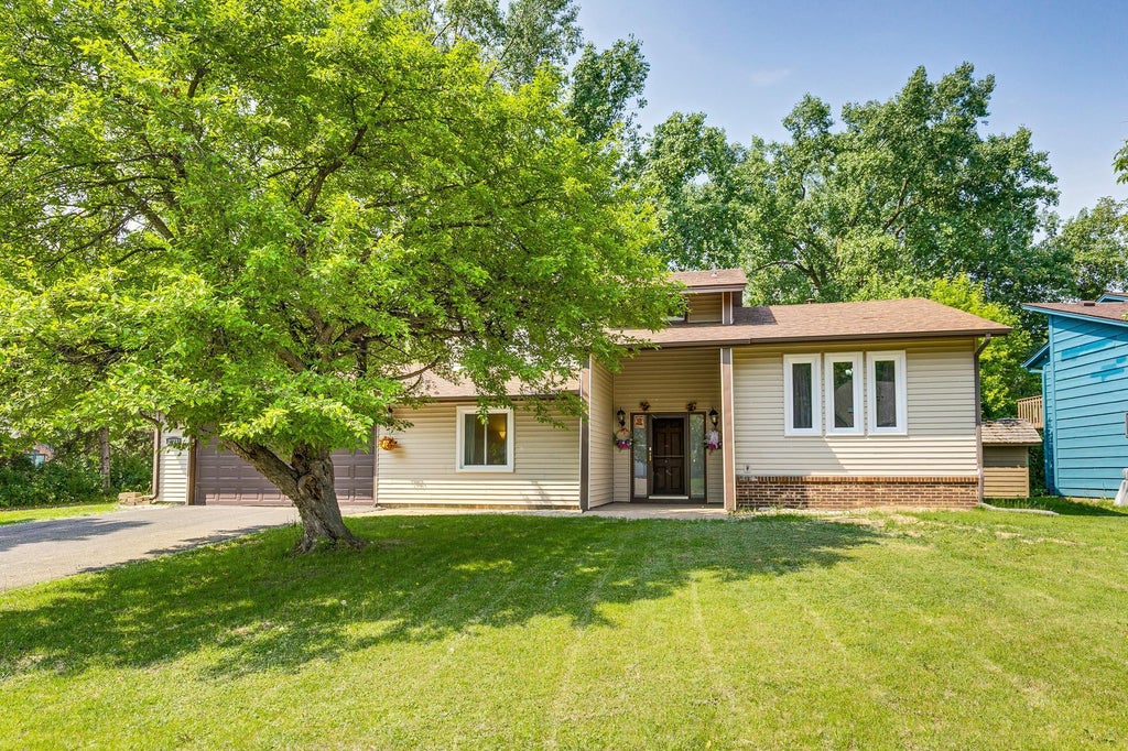 **Multiple offers received** Move in and enjoy! This spacious four level split features four bedrooms with three on the same level including an en suite primary bedroom, an open concept floor plan with a bright and airy living room/dining room, and a family room with a walkout to the backyard. New flooring throughout, most windows new, maintenance free vinyl siding, and a good sized two car garage. Oversized lot with lots of trees and a deck that is perfect for entertaining on summer evenings. Great location close to shopping, transportation and highways, and excellent Mounds View/621 schools close by. Come see it today!