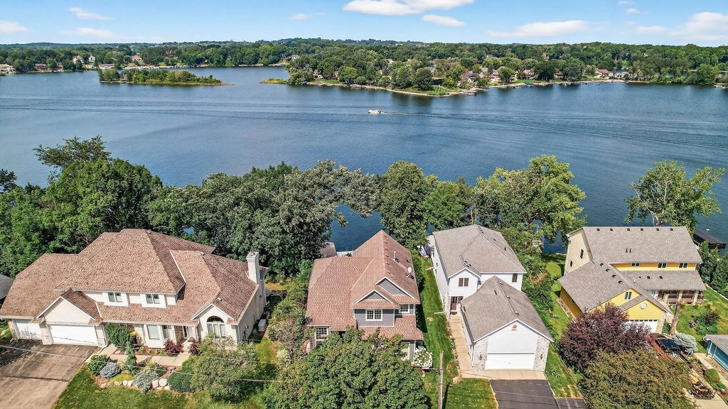 Set on a bluff overlooking Lower Prior Lake, this home comes with the kind of views that never get old. A front-row seat to 4th of July fireworks and sunsets that'll make you pause. Lakefront Park is just down the street for Music Fest, community events, and less than a mile to Main St for the farmers market, shopping and restaurants... it's all right here. Inside, tall ceilings and big windows bring the lake to you. The upper loft provides a flexible spot to hang out, work, or unwind. The primary suite includes a walk-in closet and an updated bath that feels fresh and comfortable. The lower level is set up for real life...movie nights, game days, or hosting guests...with a wet bar, built-ins, and plenty of room to spread out. Out back (or is it front?), there’s a spacious deck, a manageable yard, and steps down to your own private beach. It’s the kind of setup that makes it easy to enjoy the lake as much as you want, with minimal maintenance. Close to the action with incredible views and just the right amount of privacy makes this a true lakefront gem.