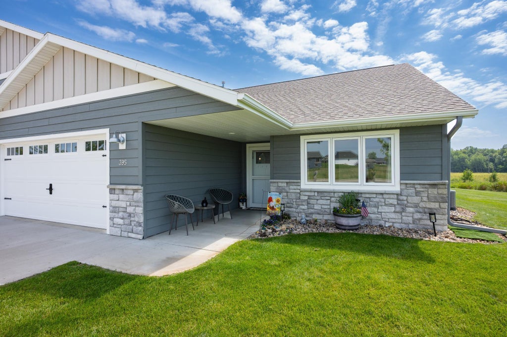 It's time to enjoy easy living at Geneva East Estates! Here's an absolutely immaculate and beautiful townhome with upgraded finishes, a bright and open floor plan with vaulted ceilings, and gorgeous kitchen equipped with a granite island and pantry space for the goodies. You'll love the stylish Owner's Suite with tile and granite materials, and will find a great 4 season room overlooking the wildlife of the backyard to enjoy that morning coffee or the afternoon football game from the couch. There's a spacious patio to enjoy the nature, and an over-sized and heated garage. Dual heat of forced air and in-floor heating is a bonus, and the location is stellar with the Geneva Golf course a stone's throw away as well as the touted Central Lakes Trail. Just minutes to town, here you can relax and enjoy the good life!