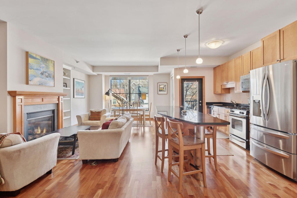 You won’t want to miss this spacious and quiet residence at The Groveland with 1 heated parking space. Spacious city-facing one bedroom condo on the quiet side of the building. Walk into an open floor plan with an abundance of natural light. Featuring an over-sized kitchen island, perfect for cooking and entertaining, cozy fireplace, and a large bedroom with ensuite bathroom and walk-in closet. Enjoy beautiful views from the bedroom, kitchen and large private balcony. Wonderful building amenities such as heated/secure parking, gym, and multiple community spaces. Easy access to both Downtown and Uptown, the Greenway & freeways!