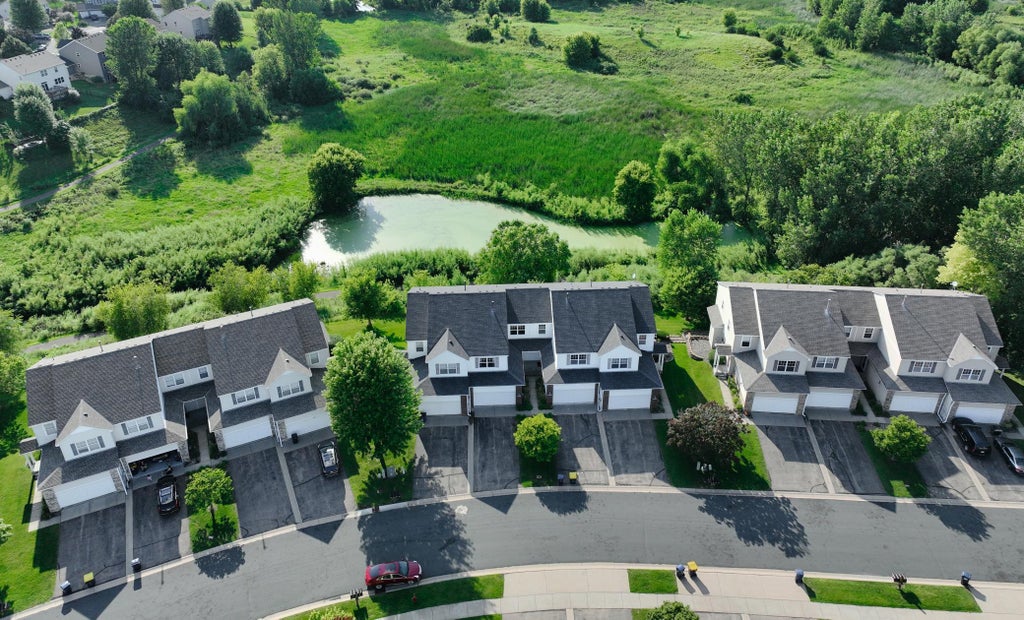 Relax on your deck overlooking lush greenery and pond views, then step into this updated home, designed for comfort, style, and everyday living. The dramatic two-story living room is filled with natural light and centered around a cozy gas fireplace—perfect for both quiet evenings and gatherings with family and friends. The chef inspired remodeled kitchen sparkles with stainless steel appliances, modern finishes, and an open flow into the bright dining area. Convenient main-level laundry adds to the ease of daily living. Read your favorite book on patio where you are also steps to the walking trail. The spacious primary ensuite provides a private retreat, while the large upper-level loft offers endless possibilities—ideal for a work-from-home office or giant play area for the kiddos. The finished lower level is made for entertaining, featuring a generous recreation area and a clever Murphy bed with custom closets—a smart, space-saving solution for hosting overnight guests. Nestled on a quiet dead-end street with walking paths, outdoor play ground and gazebo just steps away, this home combines tranquility with everyday living necessities.