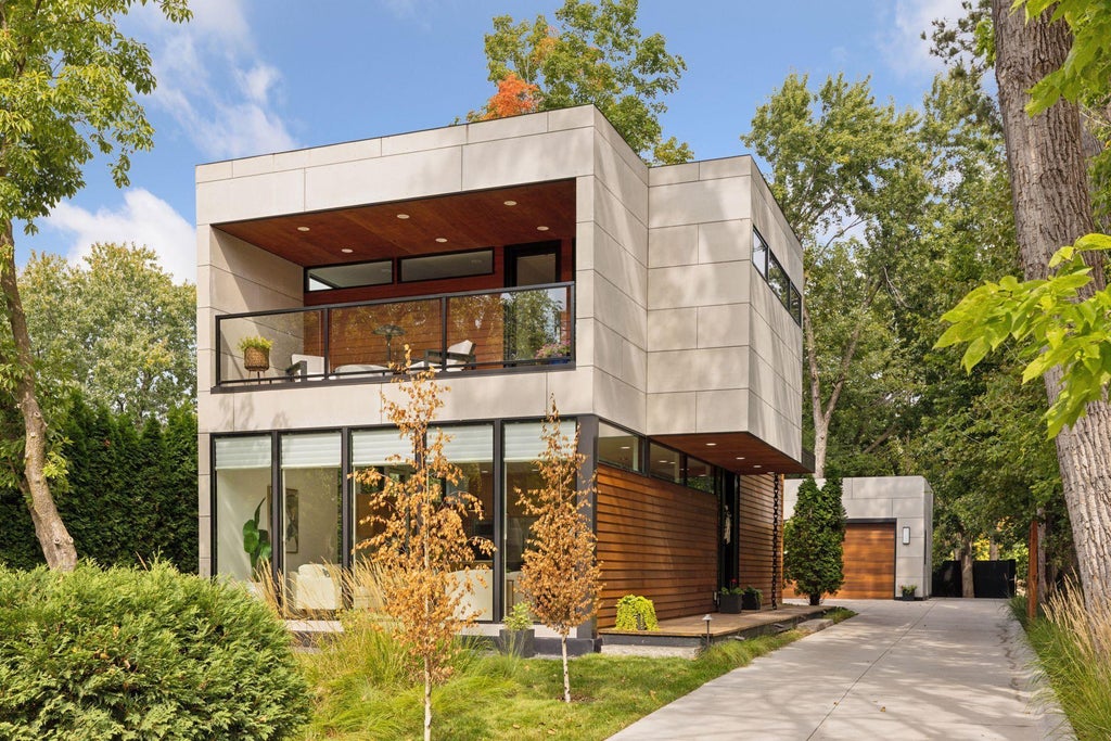 Stunning Minnetonka Mills home with sleek, modern design! Dramatic floor-to-ceiling windows fill the open-concept living and dining areas with natural light. The chef's kitchen boasts custom cabinetry and premium Fischer & Paykel appliances. Main floor includes an office and laundry. Upstairs, the serene primary suite offers a walk-in closet, spa-inspired bath with radiant heated floors, and a private balcony. The lower level is perfect for entertaining with a home theatre, wet bar, large bedroom and full bath. Upgrades include whole-house audio wiring, Ring doorbell, Nest Thermostat, and phantom door screens. Low maintenance yard mows in minutes or with a robotic mower. Oversized 2 1/2- car garage with 10-ft ceilings, 8-ft doors, and EV-charging prep. Just 30 minutes to MSP Airport and 20 minutes to Lake Harriet Bandshell.