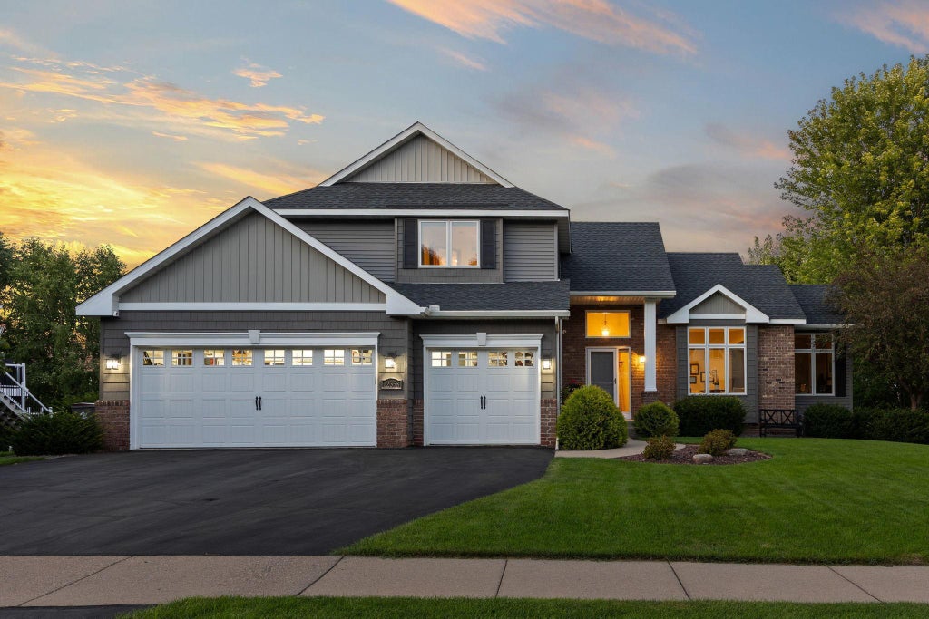 Beautifully updated 2-story in Eden Prairie with impressive ceiling heights and a bright, open layout. Major updates include new siding, roof, and 38 windows within the past 3 years for lasting peace of mind. The main level features hardwood floors, 12-ft ceilings, a welcoming foyer with elegant archways, a stylish kitchen with granite counters, double ovens, and gas cooktop, plus a family room with fireplace and backyard views. The formal dining room with windows on three sides offers a timeless, modern feel and easily hosts 10+ guests. The main-floor office has exceptional custom built-ins, providing both beauty and functionality. A powder bath and laundry/mudroom complete the main level. Upstairs, you’ll find four large bedrooms including a spacious primary suite with walk-in closet and fully remodeled bath featuring a soaking tub, tiled shower, and modern finishes. The walk-out lower level offers 9.5-ft ceilings, a bright family room with cherry built-ins, fireplace, full bar, guest bedroom & bathroom with heated floors, and craft/music rooms. Outdoor living shines with a large deck, paver patio, storage shed, and landscaped yard. Nestled in a great community near parks, trails and close to freeway and shopping. This home delivers the updates, spaces, design details, and convenience you’ve been waiting for.