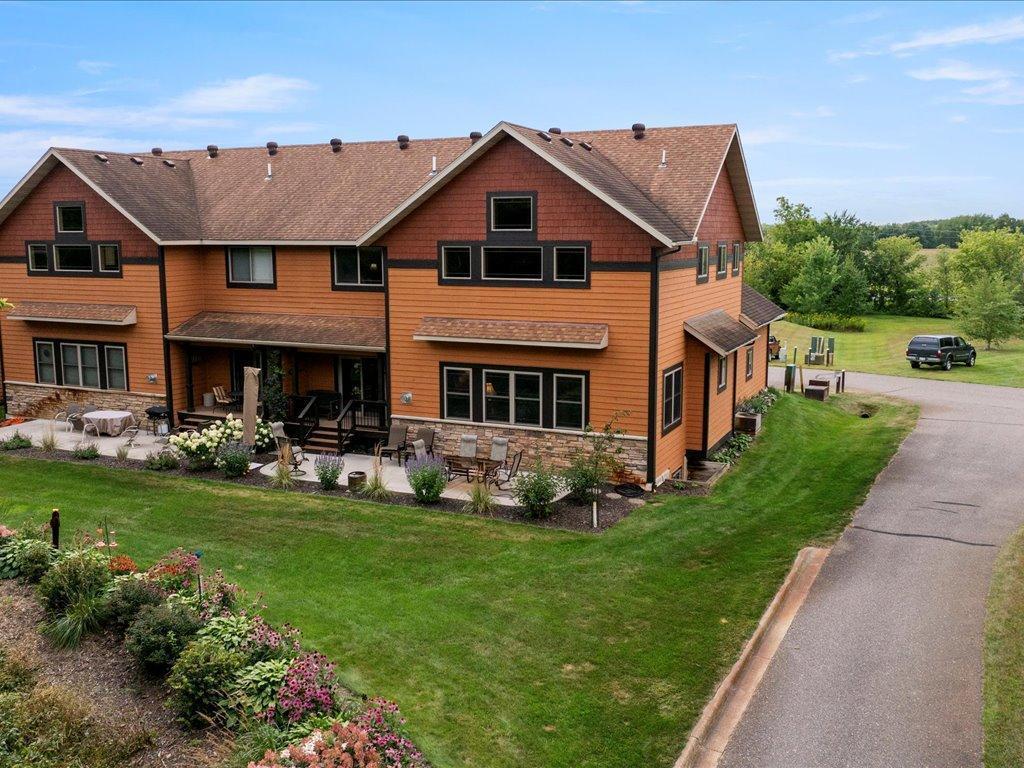 Gorgeous townhome on Clearwater Lake with 466' of association lake frontage. Very well maintained with two updated bathrooms with infloor heat. This is a must see with 3 bedrooms and 3 bathrooms with the primary on the main level along with main floor laundry. Hickory hardwood floors, cherry cabinets along with a vaulted great room with a stone/gas fireplace. Beautiful, manicured grounds and flower beds with a large outdoor patio to enjoy this serene setting. Upper level includes an office area, sitting area and two bedrooms. The lower level has a large family room with a wet bar. Beach area includes a pavilion with a bathroom, nice hard sand bottom for swimming and recreation.