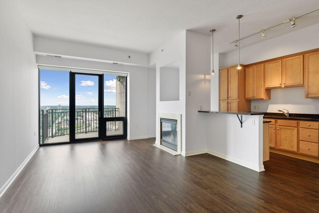 Bright and inviting Grant Park condo with one bedroom plus den. South-facing views from the 24th floor, private balcony, hardwood floors, fireplace, and in-unit laundry. Amenities include a fitness center, indoor pool, hot tub, and 24-hour security. Underground parking included. Just steps from Nicollet Mall.