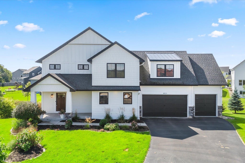 Welcome to this inviting home with beautiful wood floors on the main level and an open floor plan designed for comfortable living. The living room features a cozy fireplace with built-ins and flows seamlessly into the kitchen and dining room. The kitchen is a chef’s dream with a center island, stainless steel appliances, wall oven, range with vent hood, and plenty of space to gather. Just off the dining room, the back deck is great for grilling, entertaining, and enjoying meals with friends and family. Spacious mudroom with walk in closet stores all your work and school items. Office space off the mudroom is a secluded area perfect for working from home! Upstairs, you’ll find a spacious family room and four bedrooms. The primary suite offers a full bath with a soaking tub, walk-in shower, and dual vanity. A second full bath also includes a dual vanity and separate shower room. The walk-out lower level is unfinished, ready for your dream finishes to fit your lifestyle. Step outside to enjoy nature views, mature trees, and a fire pit in the backyard. The yard includes an invisible fence - collar will need to be purchased separately by buyer.