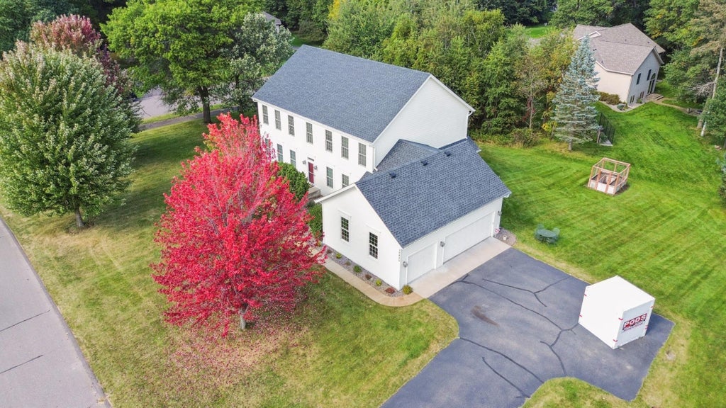 This beautifully maintained Colonial-style home blends professional polish with cozy charm—ideal for working from home, entertaining, or family time. Located in a sought-after neighborhood, it features a main-floor office, open-concept living areas, and a chef’s kitchen with double islands, stainless steel appliances, gas stove, double wall ovens, and dual sinks. All four bedrooms are upstairs, including a spacious owner’s suite with en-suite bath. The unfinished lower level offers room to grow. Recent updates include a new roof (2023) and furnace/AC (2019). Enjoy nearby walking paths, a park, hockey rink, and gazebo in this vibrant community.