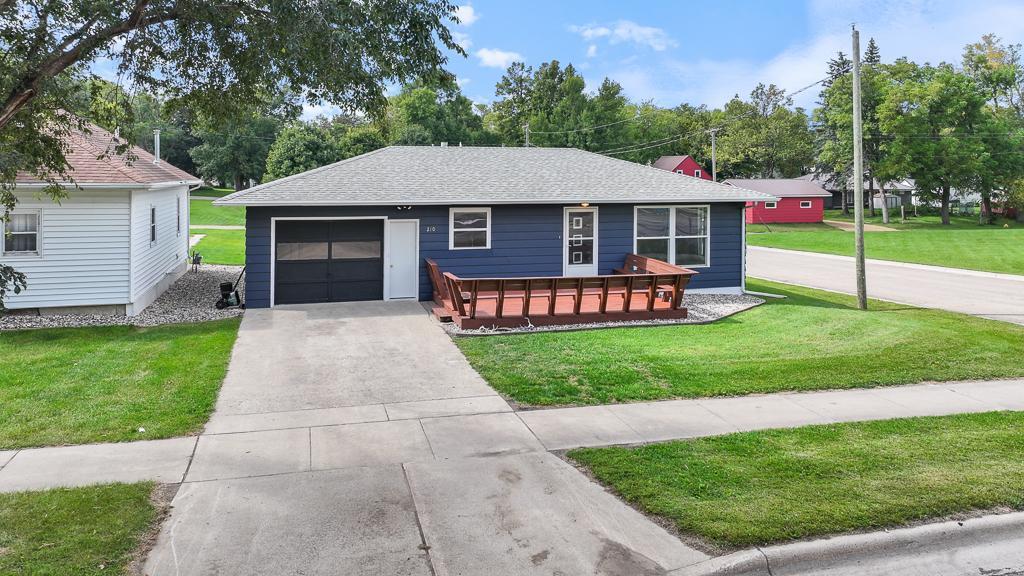 Beautifully Updated Home in the Heart of Hendricks, MN! This charming, well-maintained home offers all main-floor living—with no interior steps—for easy comfort and convenience. The property includes an oversized attached finished 1-stall garage plus a detached 25x40 shop/garage—perfect for hobbies, storage, or your dream workspace. Inside, the main level boasts an open floor plan seamlessly connecting the kitchen and living room, making entertaining and everyday living a breeze. The main floor also includes 2 bedrooms, a remodeled full bath, and a dedicated laundry room conveniently located near the garage entry. The basement offers endless possibilities with a spacious 30x25 footprint, half bath, mechanical room, and room to add additional bedroom(s), a family room, or a recreation space to suit your lifestyle. Outside, you’ll appreciate the home’s beautiful wood siding, updated windows, asphalt shingles, and a large 12x16 front deck—ideal for relaxing or entertaining. Situated on a large corner lot, the property features a white wood picket fence around the garage/shop, plenty of green space, and access from the north, east, and alley for convenience. This home is truly a rare find—move-in ready with room to grow, and located near the heart of Hendricks!