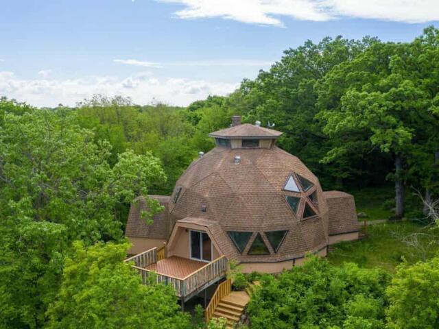 Extremely rare opportunity to own a one-of-a-kind hideaway! Nestled in the middle of woods and serene nature is this unique dome masterpiece. Step inside and you will be in awe of the architectural design and grand windows letting in tons of natural sunlight. The upper level features a walk-up to an in-home observatory with incredible tree top views and is perfect for star gazing. If you have ever dreamed of having your own getaway retreat where you can escape, relax and detach, this is it! Could also make a very cool AirBnB opportunity. Buyer to verify all measurements. Windows may need repair or replacement.