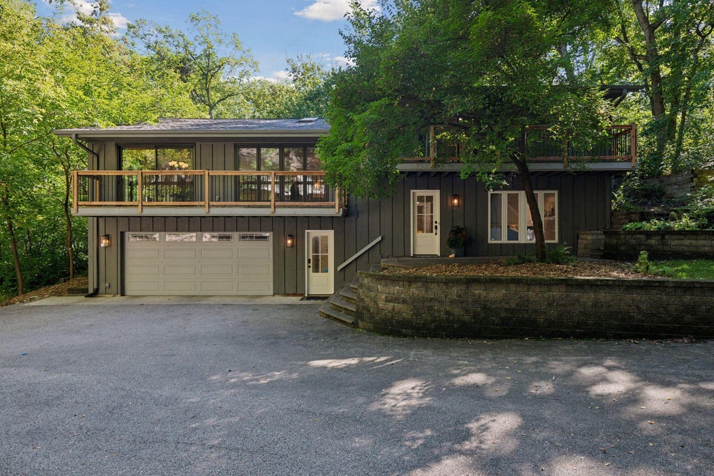 Welcome to this gorgeous home that feels like you’re living in the treetops. Step inside and you’ll find expansive, open living spaces filled with natural light from floor-to-ceiling windows. A cozy stone fireplace anchors the living room while sliding glass doors lead to elevated decks where you can sip your coffee among the trees. The chef’s kitchen features warm wood cabinetry, granite countertops, and stainless-steel appliances, plus an oversized island with seating. Spacious bedrooms and the home office nook offers a quiet, tucked-away space for remote work. Multiple decks and patios invite you to enjoy the wooded surroundings, fenced backyard and thoughtful landscaping. Whether you’re hosting dinner under the string lights or grilling on the patio, this home makes the most of its private setting. This home offers an attached 2 car garage and a detached 2 car garage. Located in highly desirable West Bloomington, you’ll enjoy easy access to parks, trails and shopping.