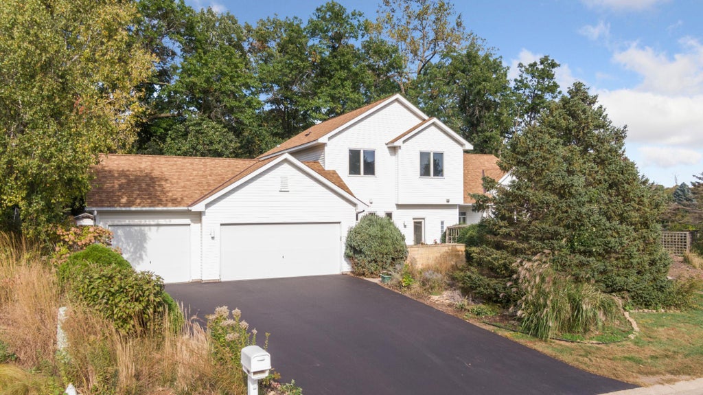 Contemporary home on a huge 3/4-acre lot with a view of a pond that backs up to acres of nature preserve owned by the City of Maplewood. This neighborhood was developed in the late 1990s, and there are still many of the original homeowners. This home was a custom built 2 story & could easily be converted into a 4-bedroom home. Featuring massive windows, hardwood floors, open kitchen with stainless appliances, a center island & walk-in pantry. The great room has a gas fireplace and overlooks the nature preserve. The main floor also has a living & dining room, mudroom/main floor laundry, a bedroom & a half bath. There is a slider out to the back deck & an additional glass door to a private front yard patio. The natural lighting in this home is incredible & you will appreciate the transom windows, fixed privacy windows, the skylight & unique use of glass block peppered throughout the home. Outside is a quiet street which ends in a cul-de-sac, a massive fenced-in private garden just waiting for next year, lots of trees, ornamental grasses and perennials, deck with views of the pond & a cute garden shed. Truly one of a kind!